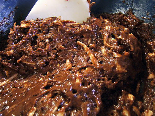 3. With a whisk or a wooden spoon, mix egg yolks and sugar together. Add oil and then flour mixture, beating until batter is smooth (MY NOTES: Do not mix the flour completely in at this point; You will mix a lot in the following directions. In fact, I suggest stirring in the coconut, cocoa powder, and grated chocolate BEFORE adding the flour and milk. Remember, you still have egg whites to fold in). Mix in coconut, cocoa powder, grated chocolate, and milk and blend well.